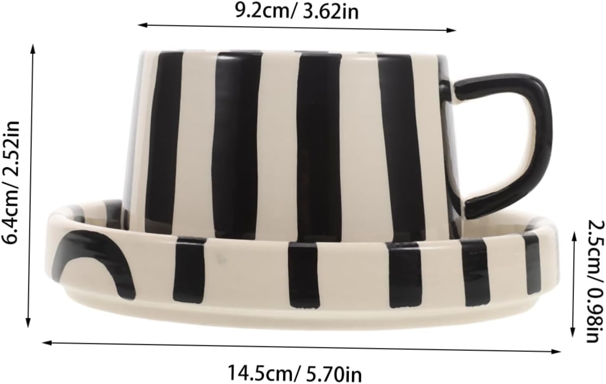 1-Set Ceramic Coffee Mug with Saucer, Striped Design for Office Tea and Coffee, Latte Art, Milk, Juice, and Afternoon Breaks