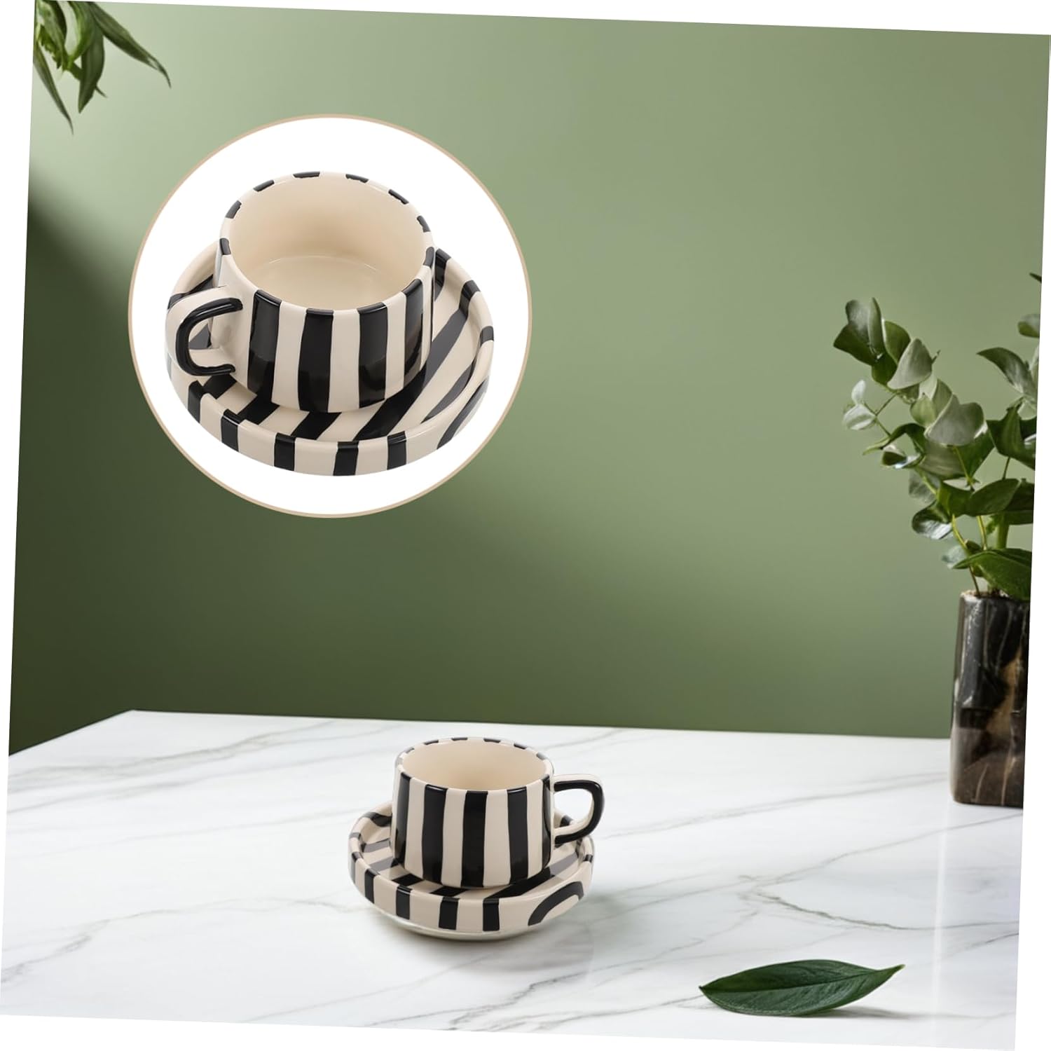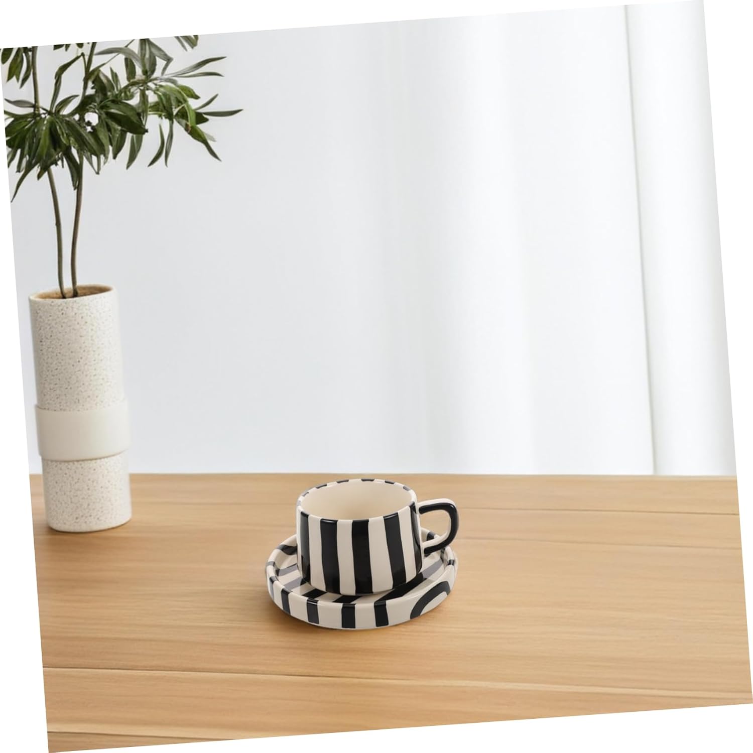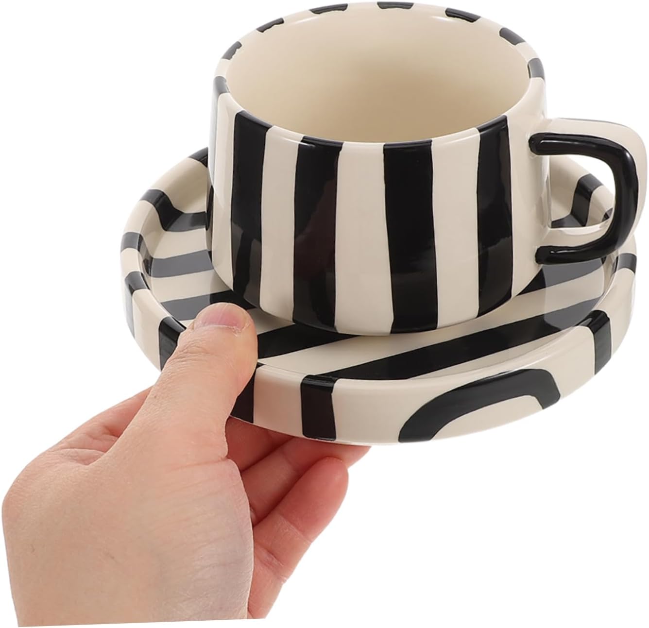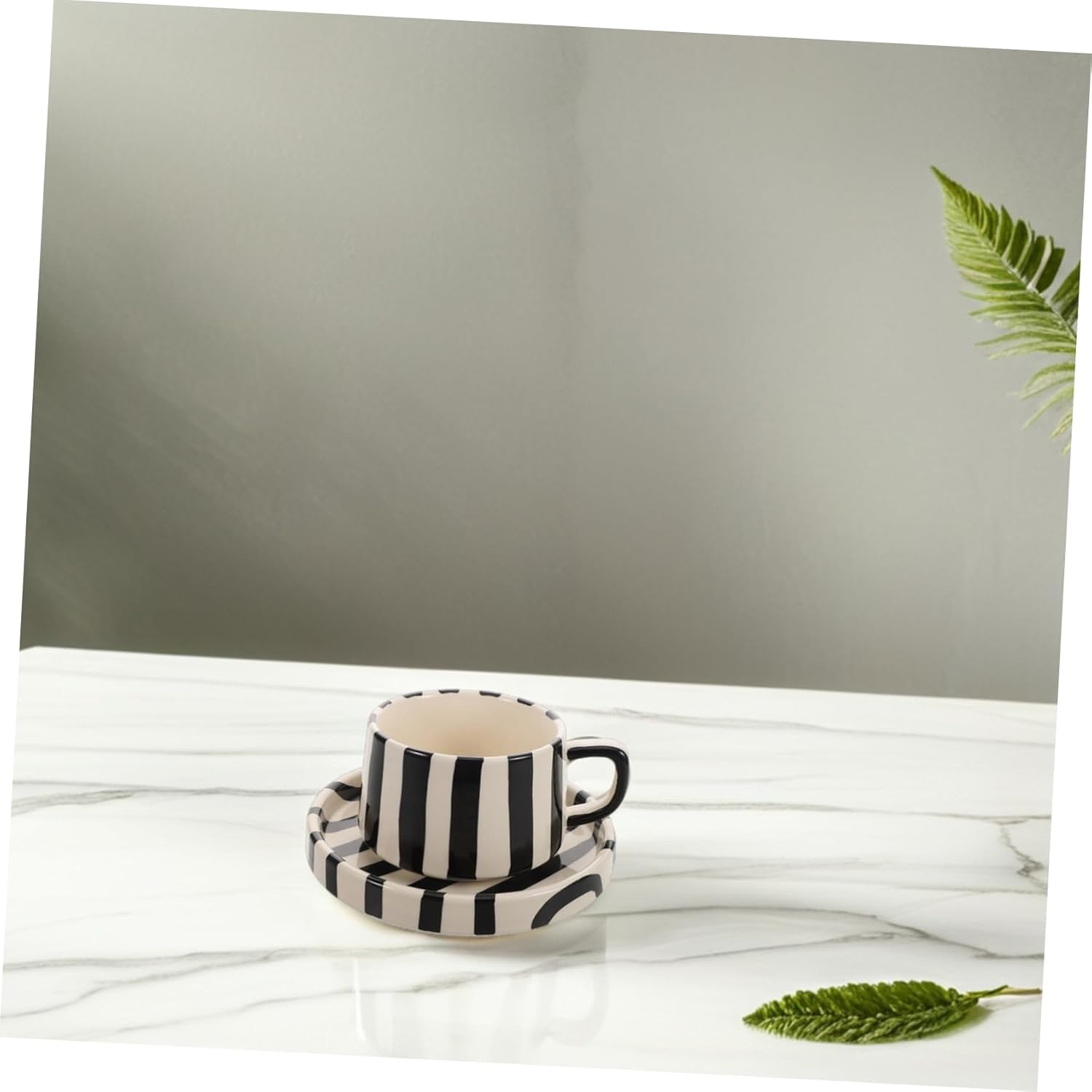 Enhance your daily coffee or tea ritual with this ceramic mug and saucer set. Featuring a distinctive striped design, it brings a touch of style to your office desk or home coffee station. Crafted from durable ceramic, the set is built for everyday use and is easy to maintain.