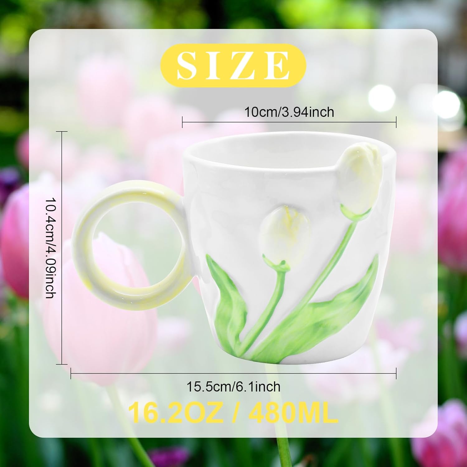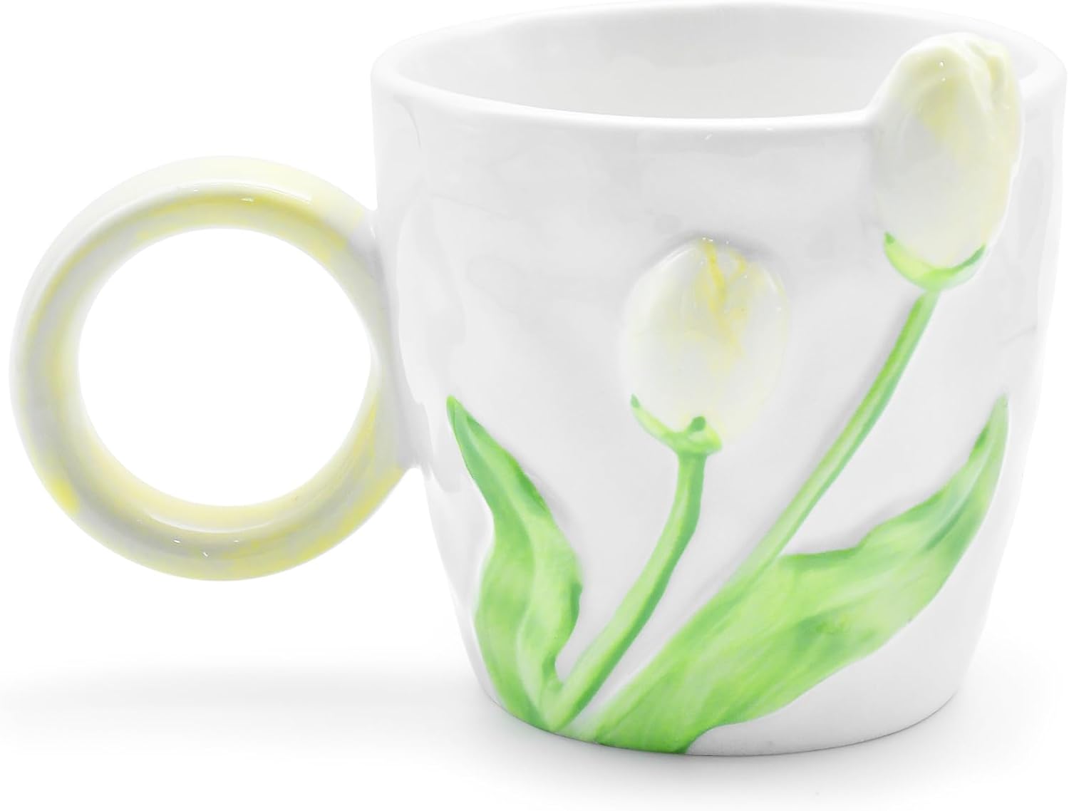 16.2 oz Tulip Ceramic Mug with 3D Floral Design