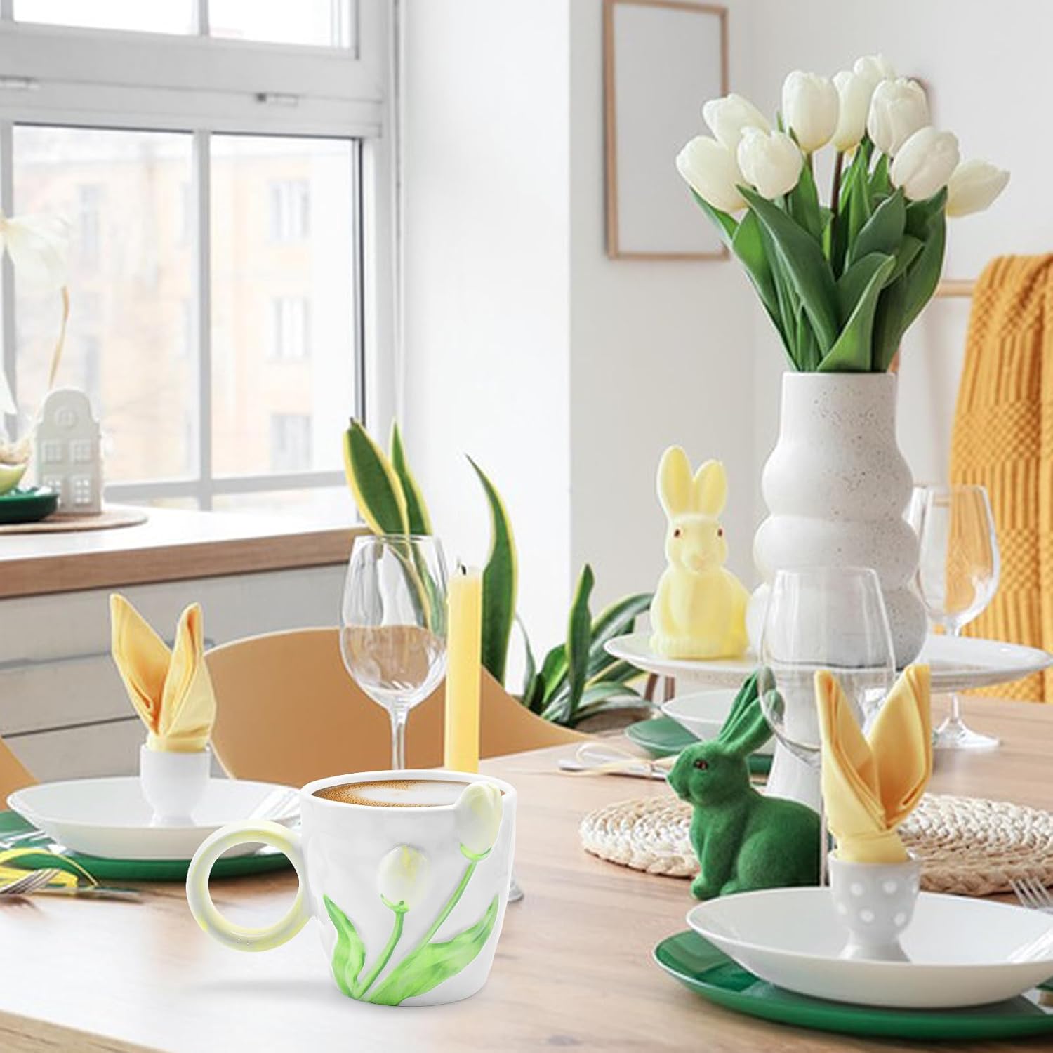 Embrace the delicate charm of spring with the Tulip Ceramic Mug. Designed to enhance your daily coffee or tea ritual, this mug combines aesthetic appeal with functional design. Its graceful tulip-shaped silhouette and intricate 3D floral accents bring a touch of nature's elegance to your kitchen or office.