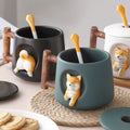 3D Ceramic Dog Mug with Lid and Spoon – 14-Ounce Capacity for Coffee, Tea, and Other Beverages