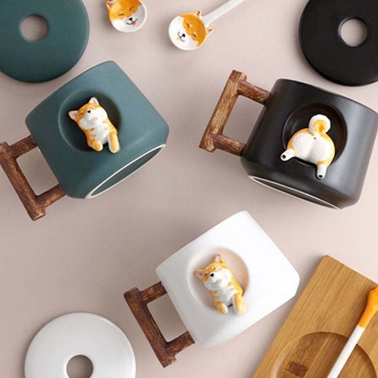 This mug features a charming 3D depiction of a Shiba Inu, seemingly peeking out playfully from the side. Each piece is hand-painted, showcasing meticulous attention to detail and a unique artistic style.