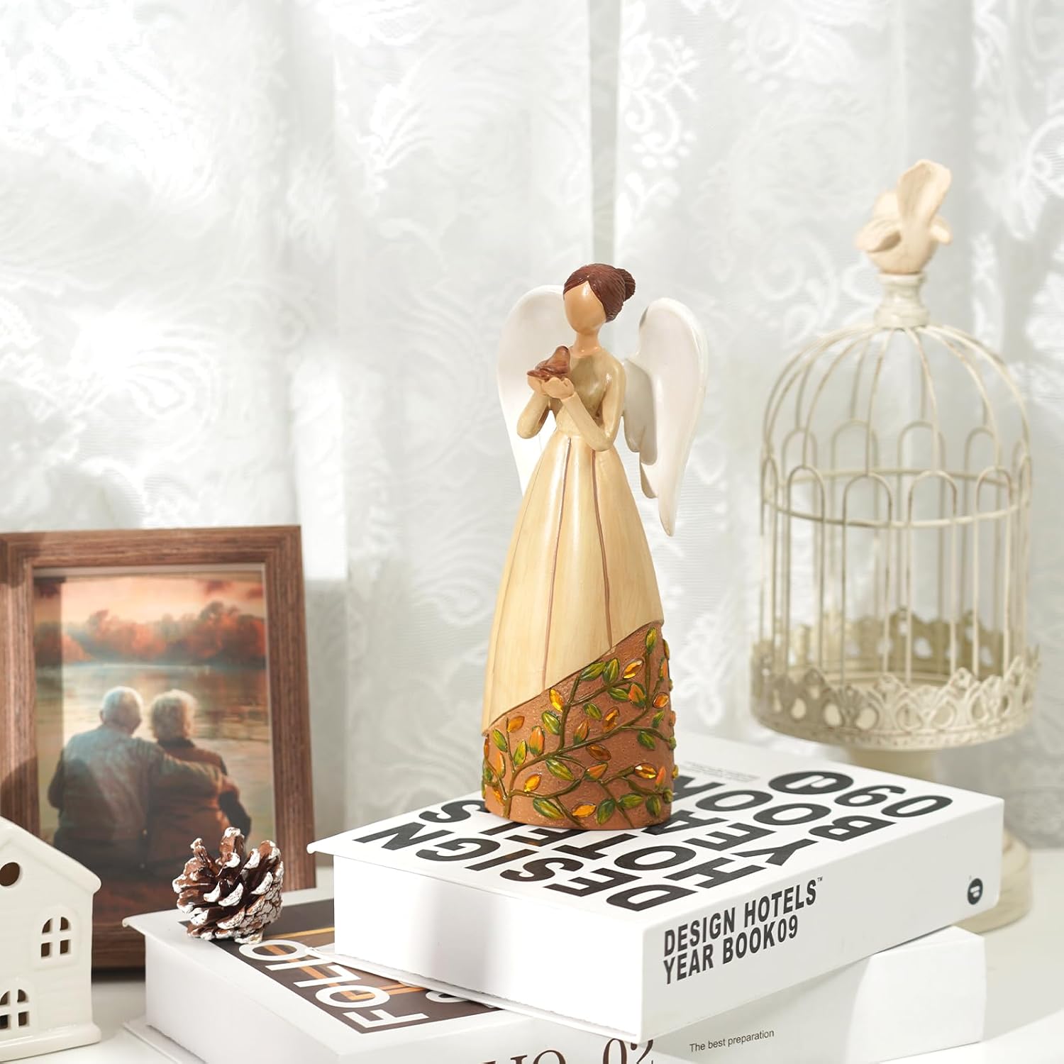Angel Statue with Cardinal Bird - Resin Figurine for Home Decor, Collectible Gift for Memorial, Office, or Living Room