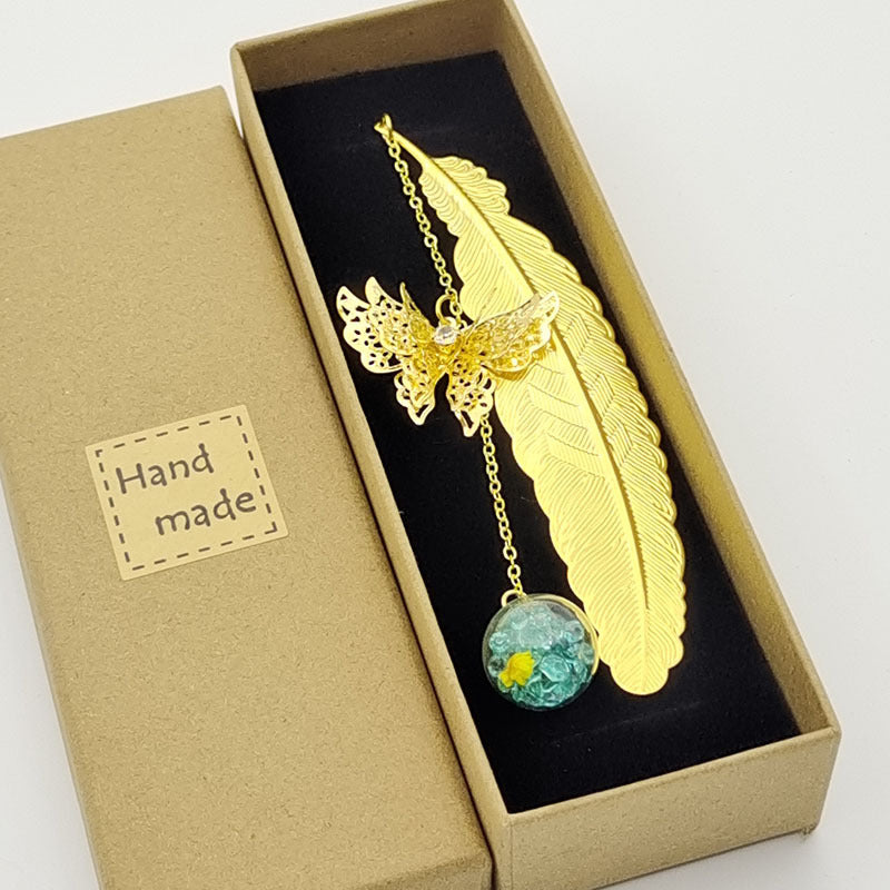 Each bookmark features an elegantly detailed feather and a striking 3D butterfly pendant, connected by a pure metal chain.