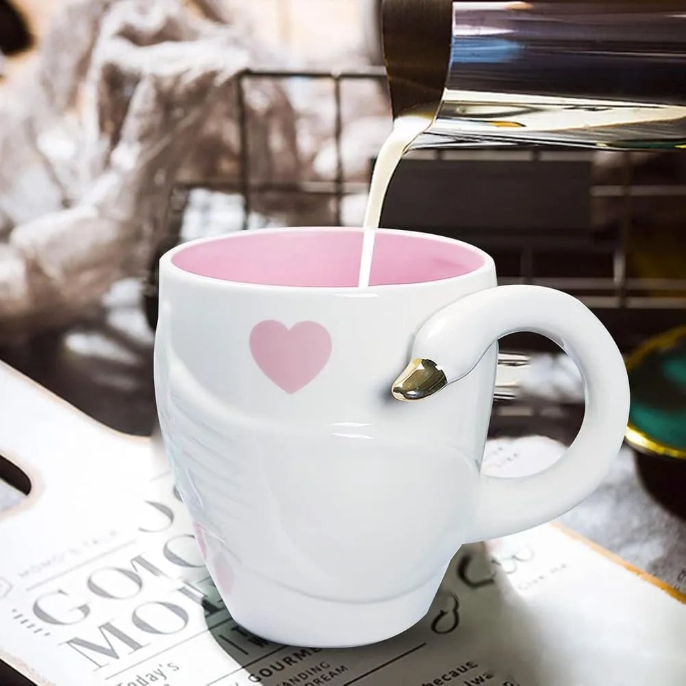This animal-shaped ceramic cup is a functional and charming addition to any kitchen or office. Crafted for daily use, it combines a unique, playful design with practical features. The set includes a matching spoon and coaster, ensuring a complete serving experience.