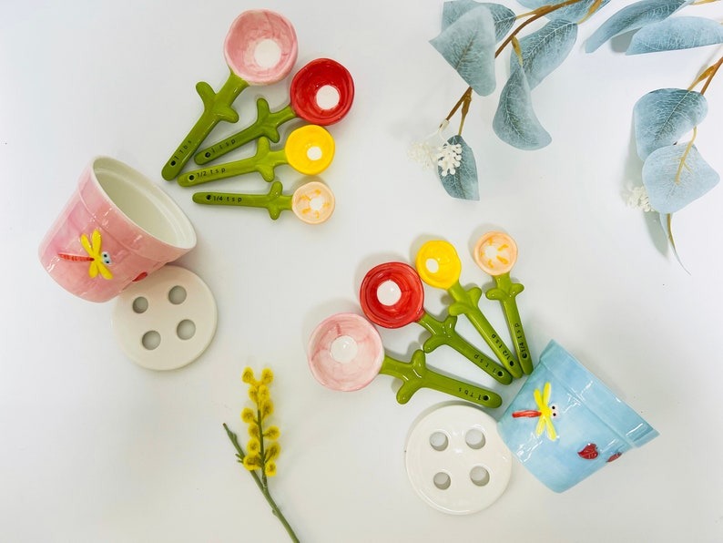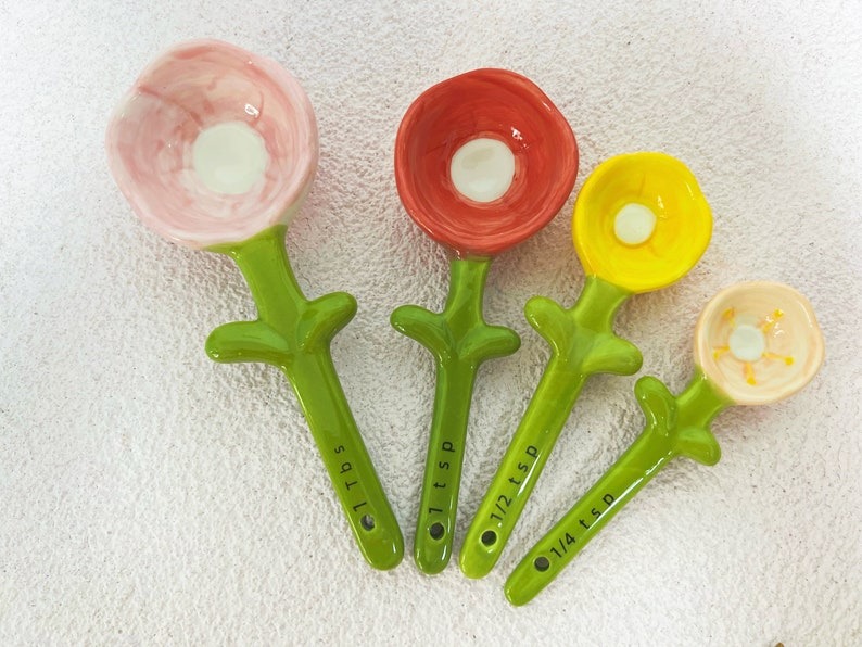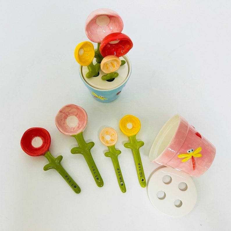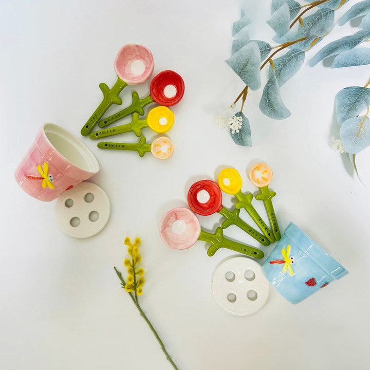Add a bloom of practicality and style to your kitchen with this lovely ceramic measuring spoons set!