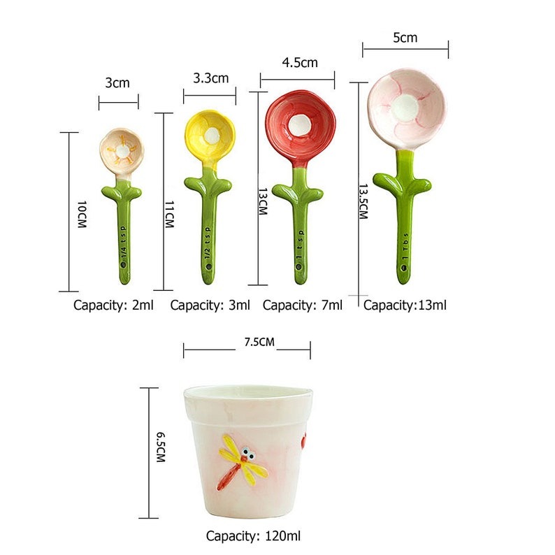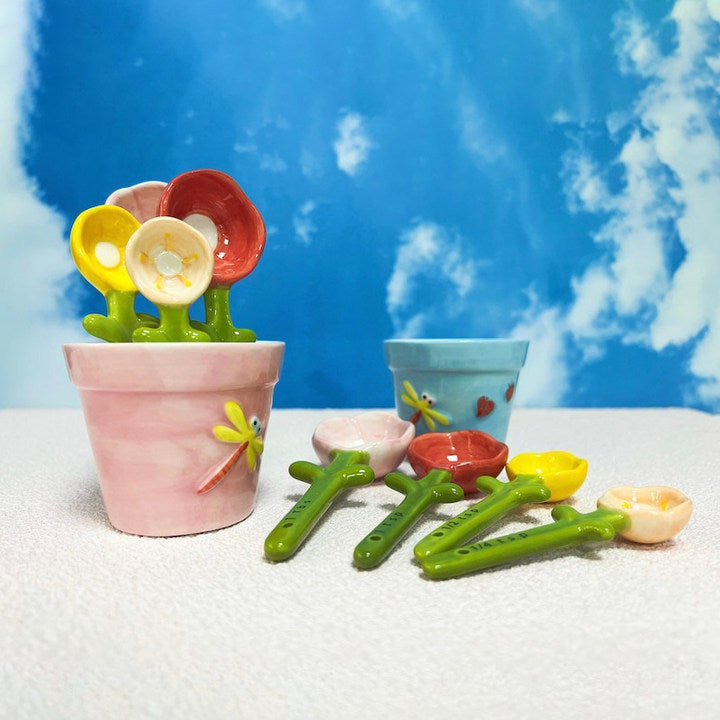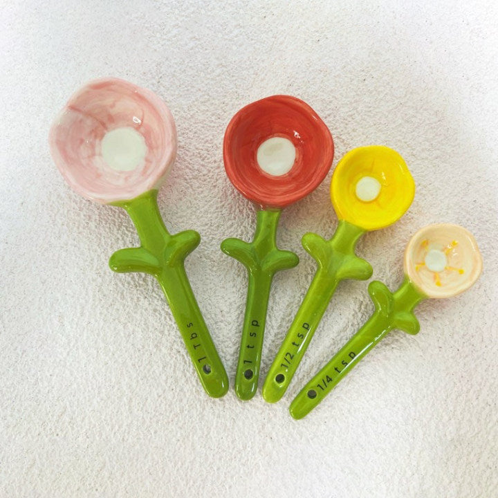Transform your cooking and baking routine with a dash of charm and a flourish of style! This exquisite set of ceramic measuring spoons is designed in the shape of delicate, handcrafted flowers, bringing a cute and vivid touch to your kitchen counter. More than just a practical tool, it's a piece of art that adds character and whimsy to your culinary space.
