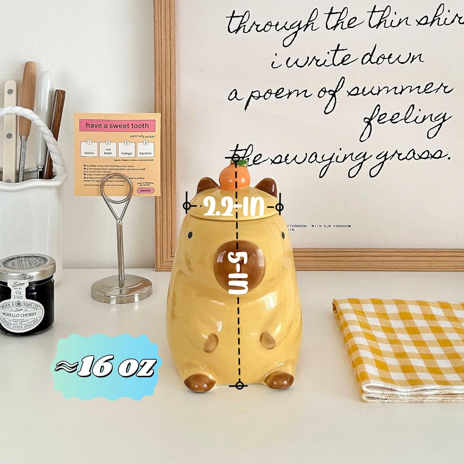 Capybara Ceramic Mug with Lid, 16 Oz Kapibara Tumbler