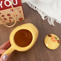 Included with the mug is a matching lid, topped with a small orange accent, adding to its whimsical character. Suitable for home, office, or gatherings, this mug brings a distinctive touch to daily routines.