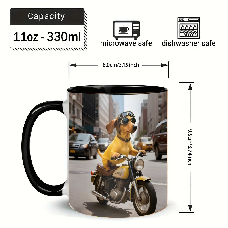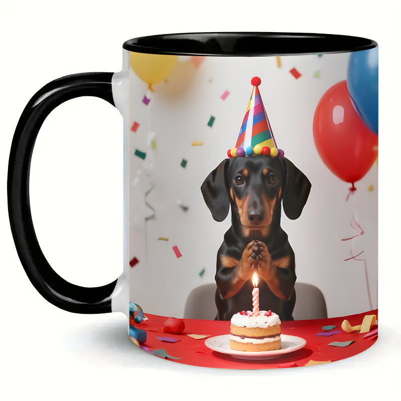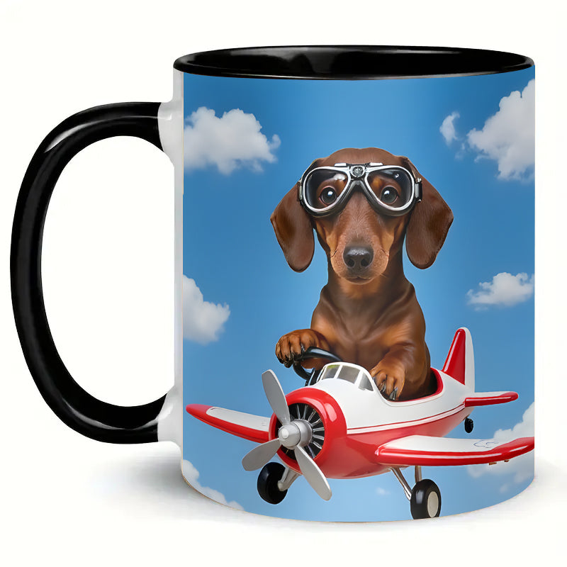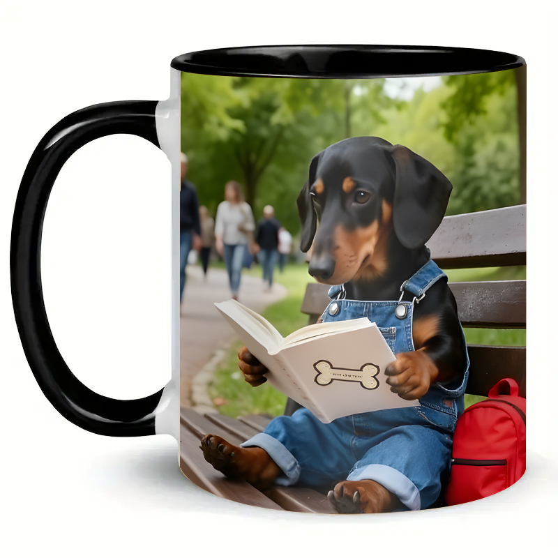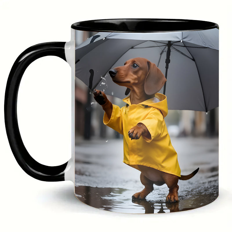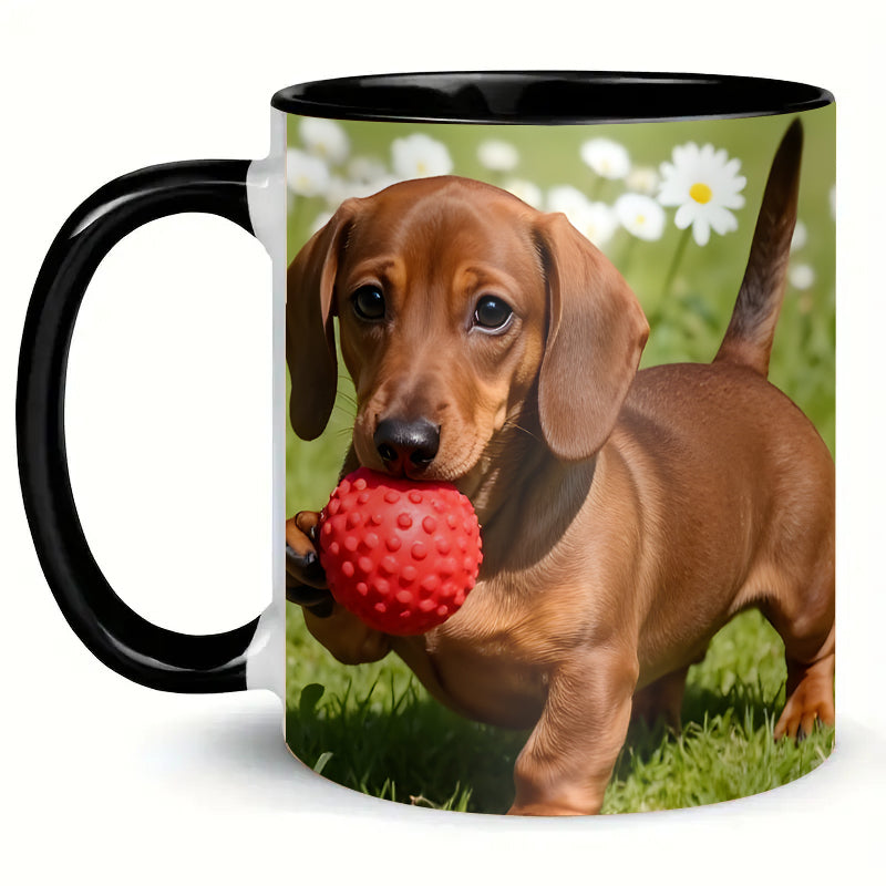 With its thematic canine design, this mug may appeal to dachshund enthusiasts, dog owners, or individuals seeking a decorative item for their kitchen or office. It is also presented as an option for gift-giving occasions.