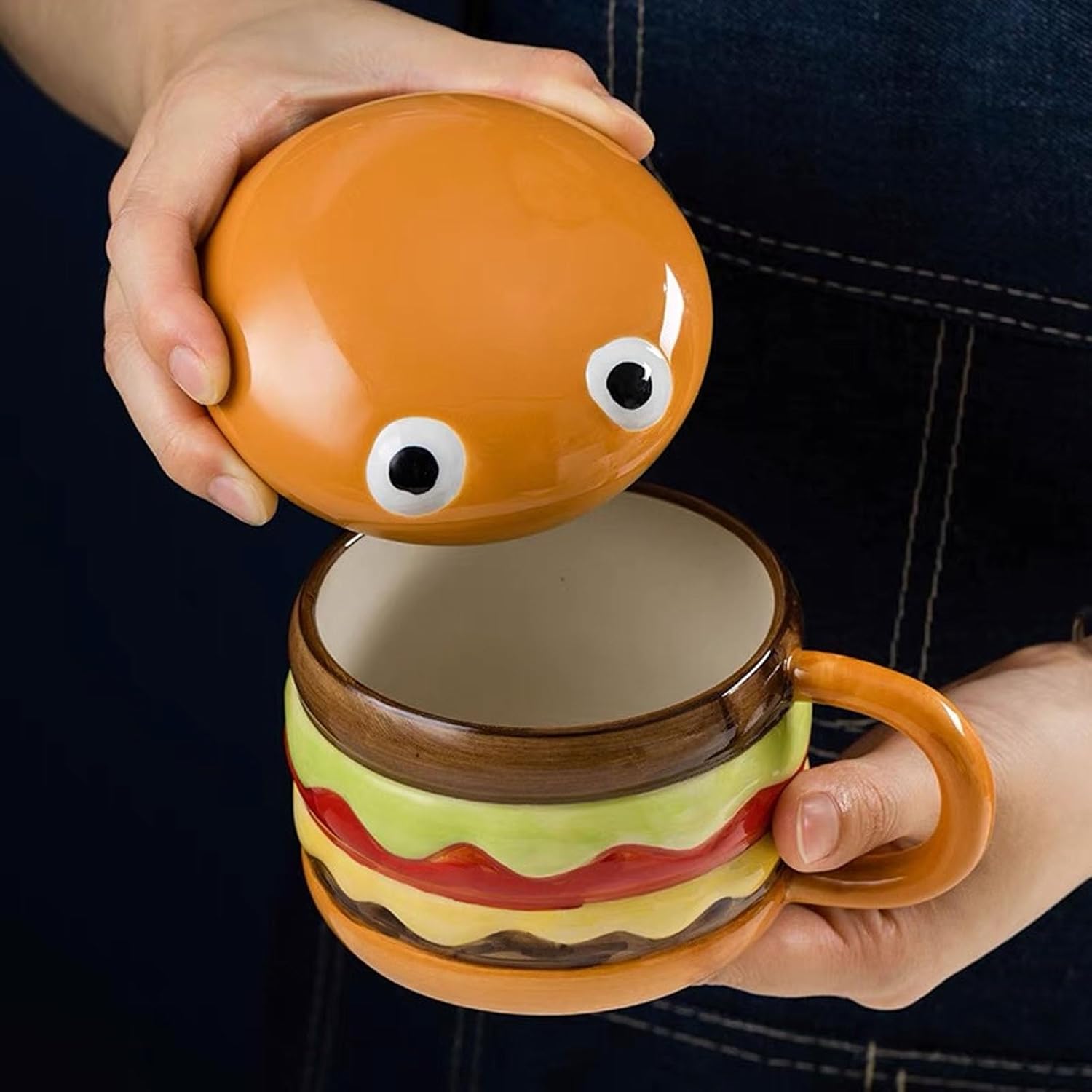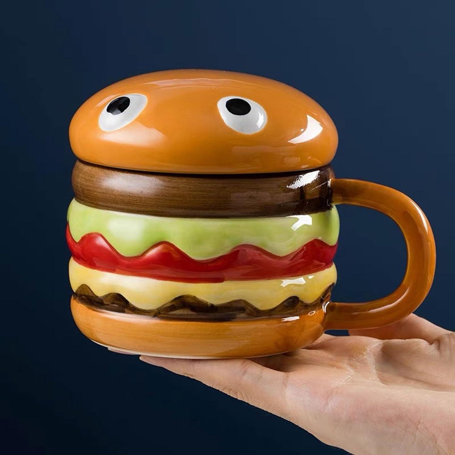 Artistic Design: Features a full-coverage hamburger cartoon pattern created using under-glaze craftsmanship and hand-painted accents.