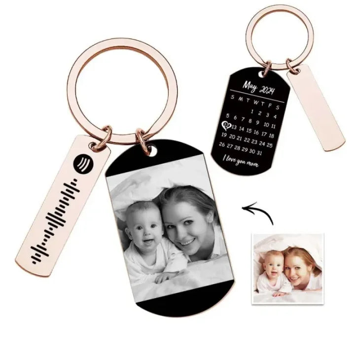 Custom Photo Keychain with Calendar and Soundwave Design