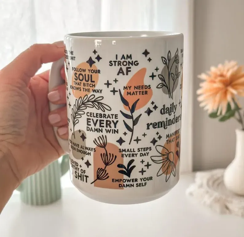 Embrace each morning with a sense of strength and self-assurance using the Daily Affirmation Mug.