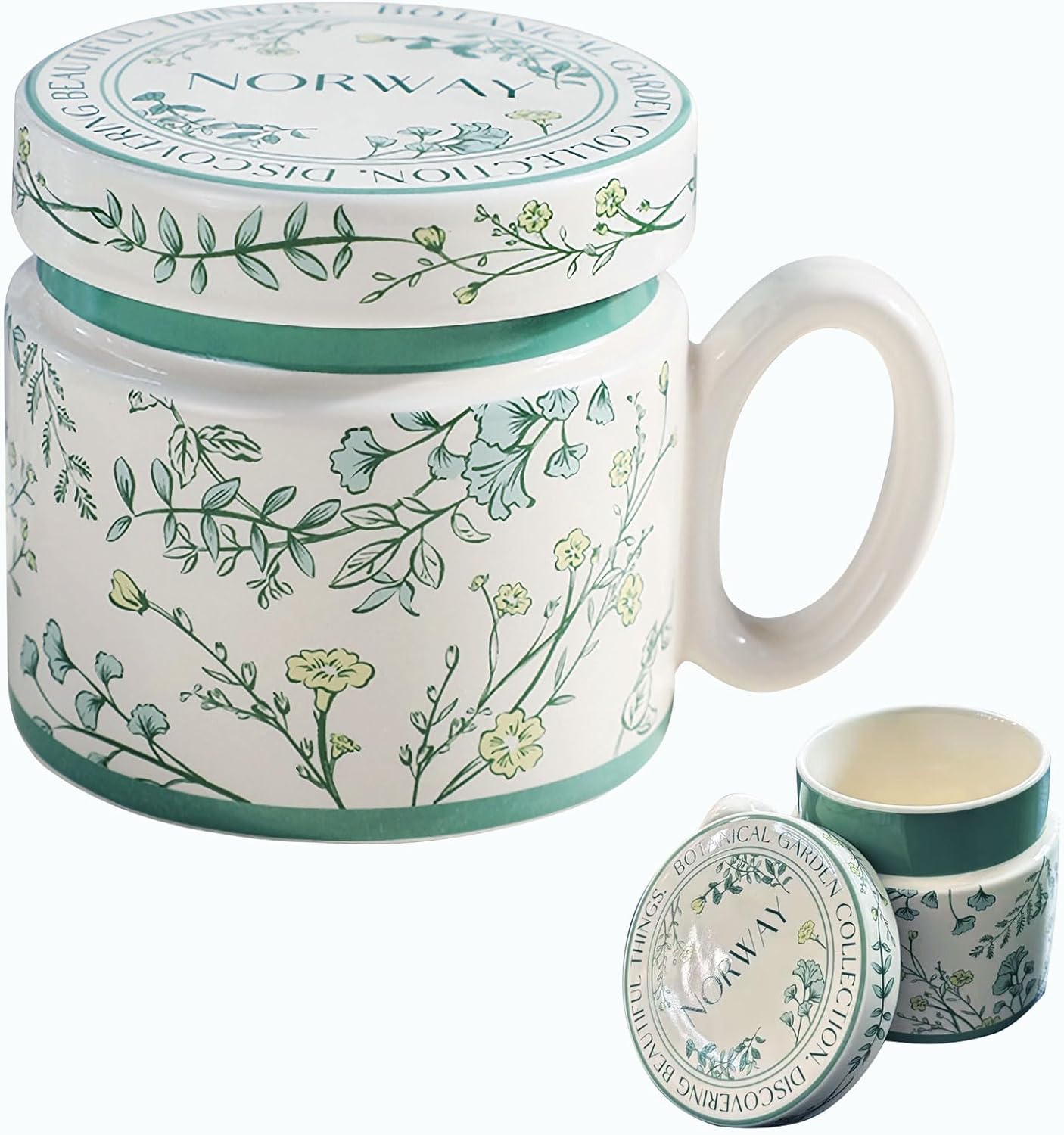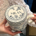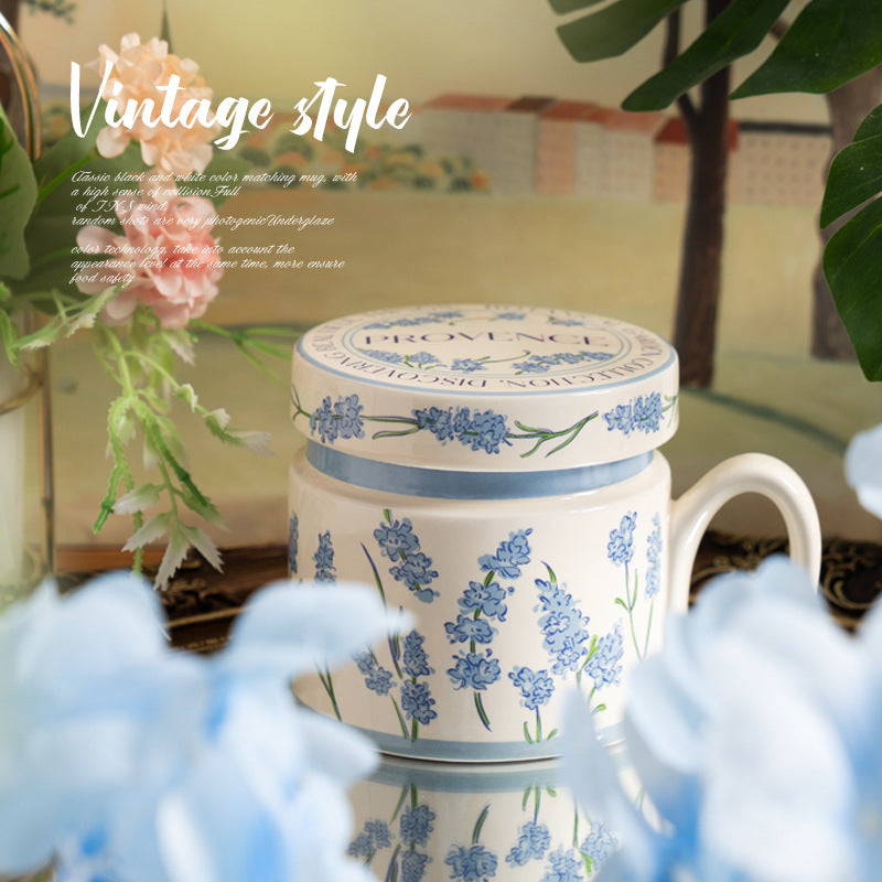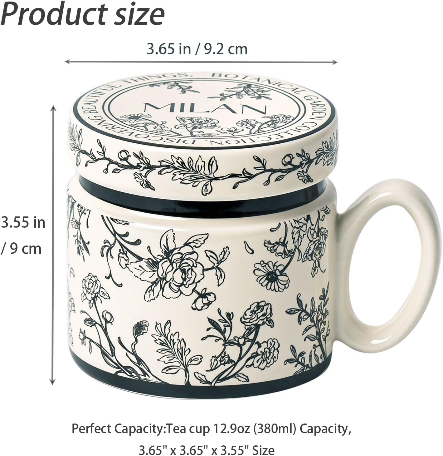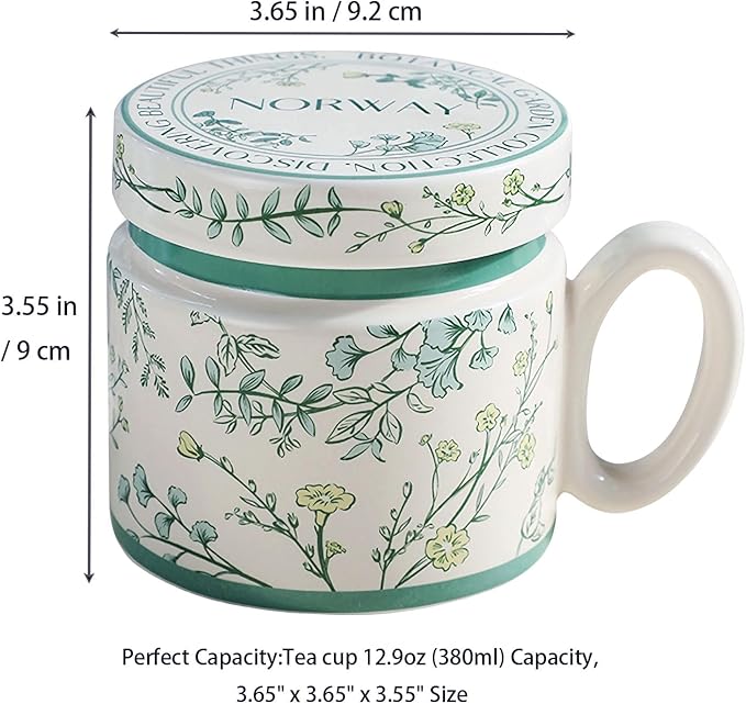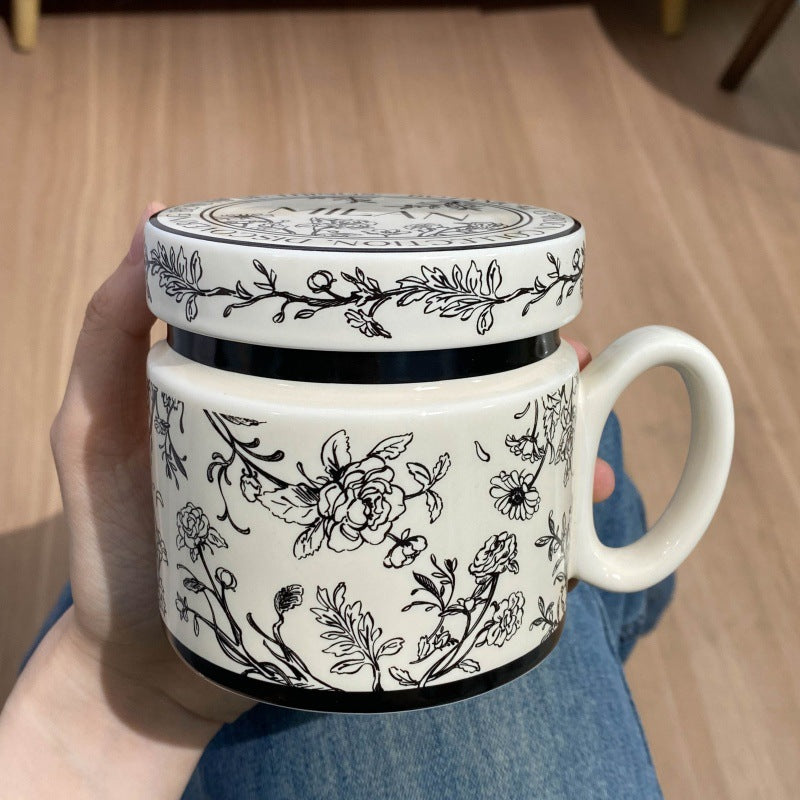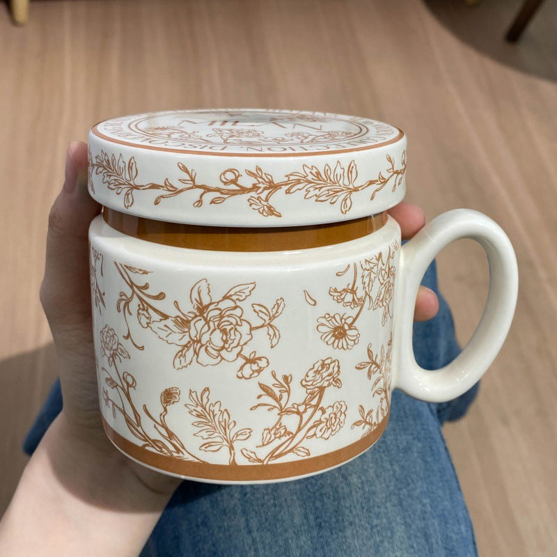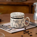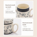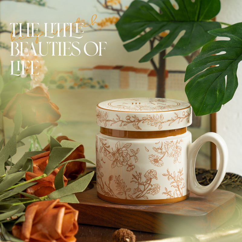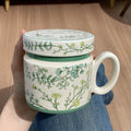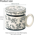 12.9oz Ceramic Coffee Mug with Lid, Floral Pattern Porcelain Tea Cup for Office and Home Use