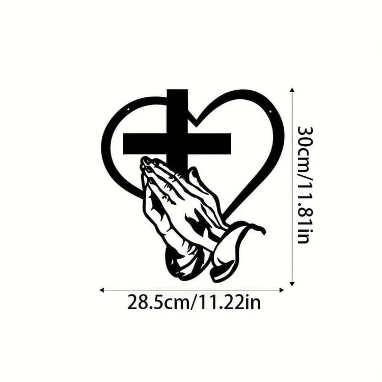 Handcrafted Iron Wall Art - Christian Heart and Cross Symbol