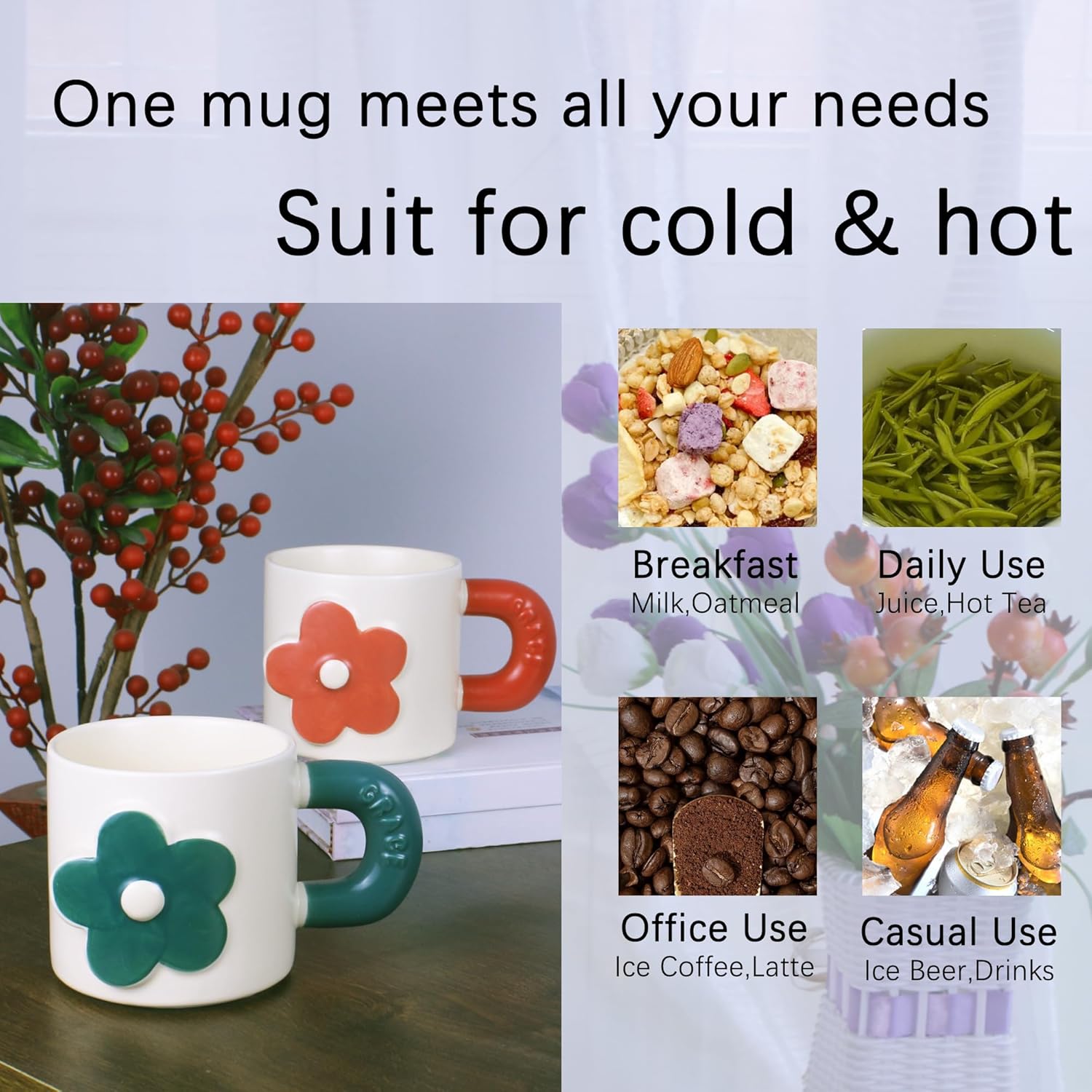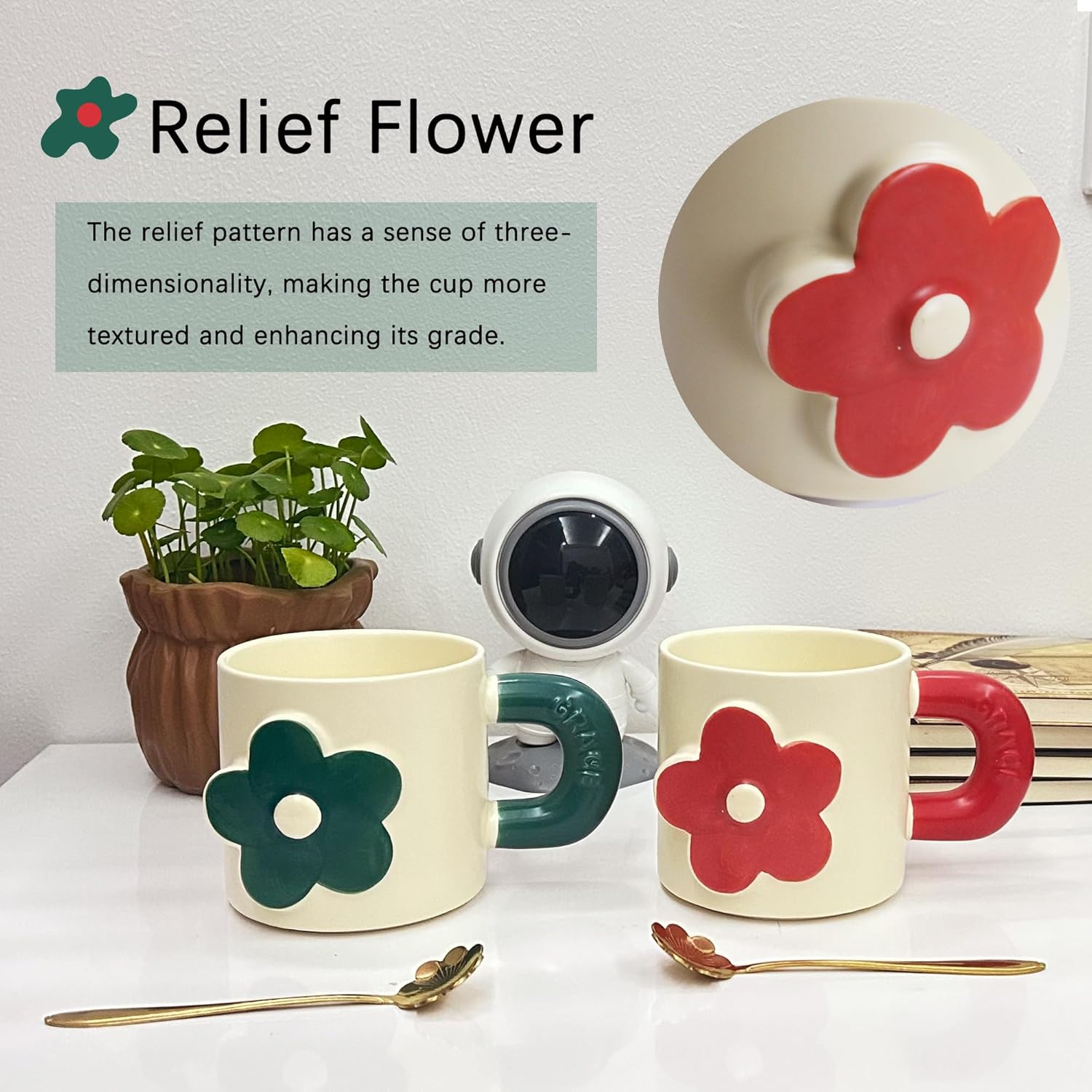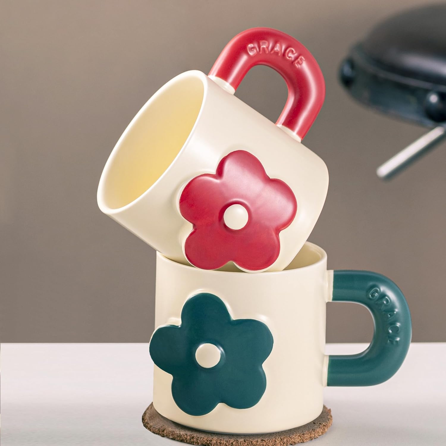 Relief Floral Design: Features a three-dimensional relief pattern that adds texture and visual depth to each mug.