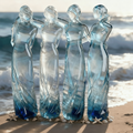 This sea glass sculpture portrays three women standing side-by-side, their arms linked, representing sisterhood, friendship, and enduring affection.