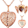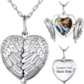 Personalized Angel Wing Photo Locket Necklace with Name Engraving