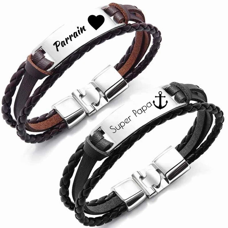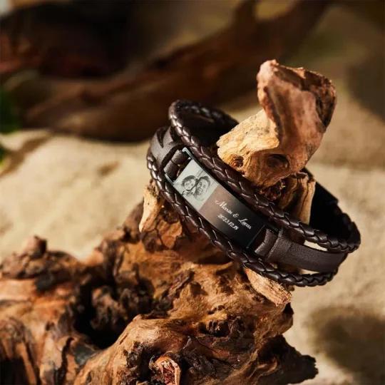 Personalized Leather Bracelet for Men – Custom Engraving with Text and Photo