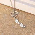 Personalized Mama Heart Necklace with Custom Baby Footprint Charms