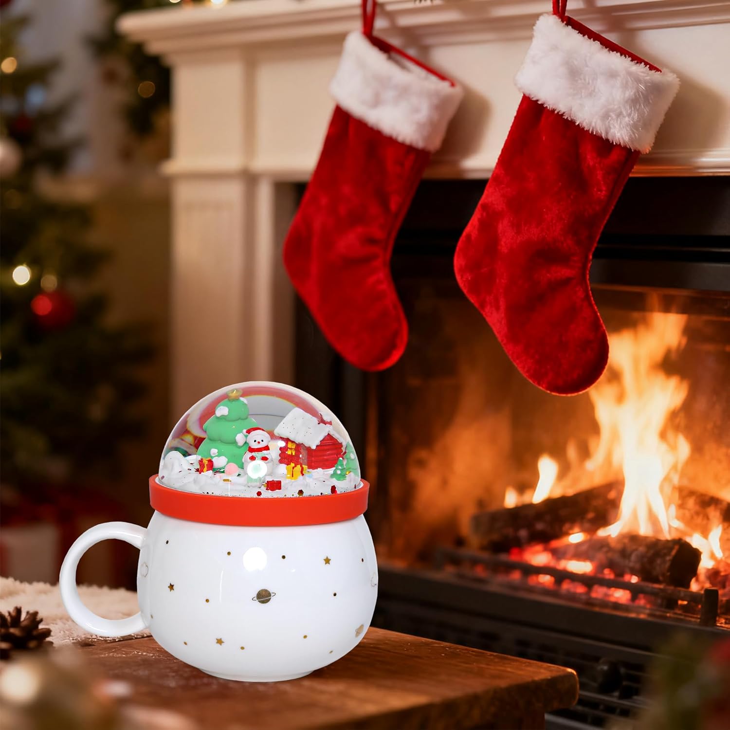 Santa Lid Ceramic Mug - 14OZ Holiday Drinkware for Coffee, Tea, and Hot Chocolate