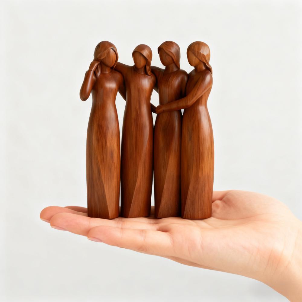 Sisterhood is expressed through shared moments, enduring understanding, and steadfast presence. This set of wooden figurines visually represents that connection, offering a physical representation of the bond between sisters.