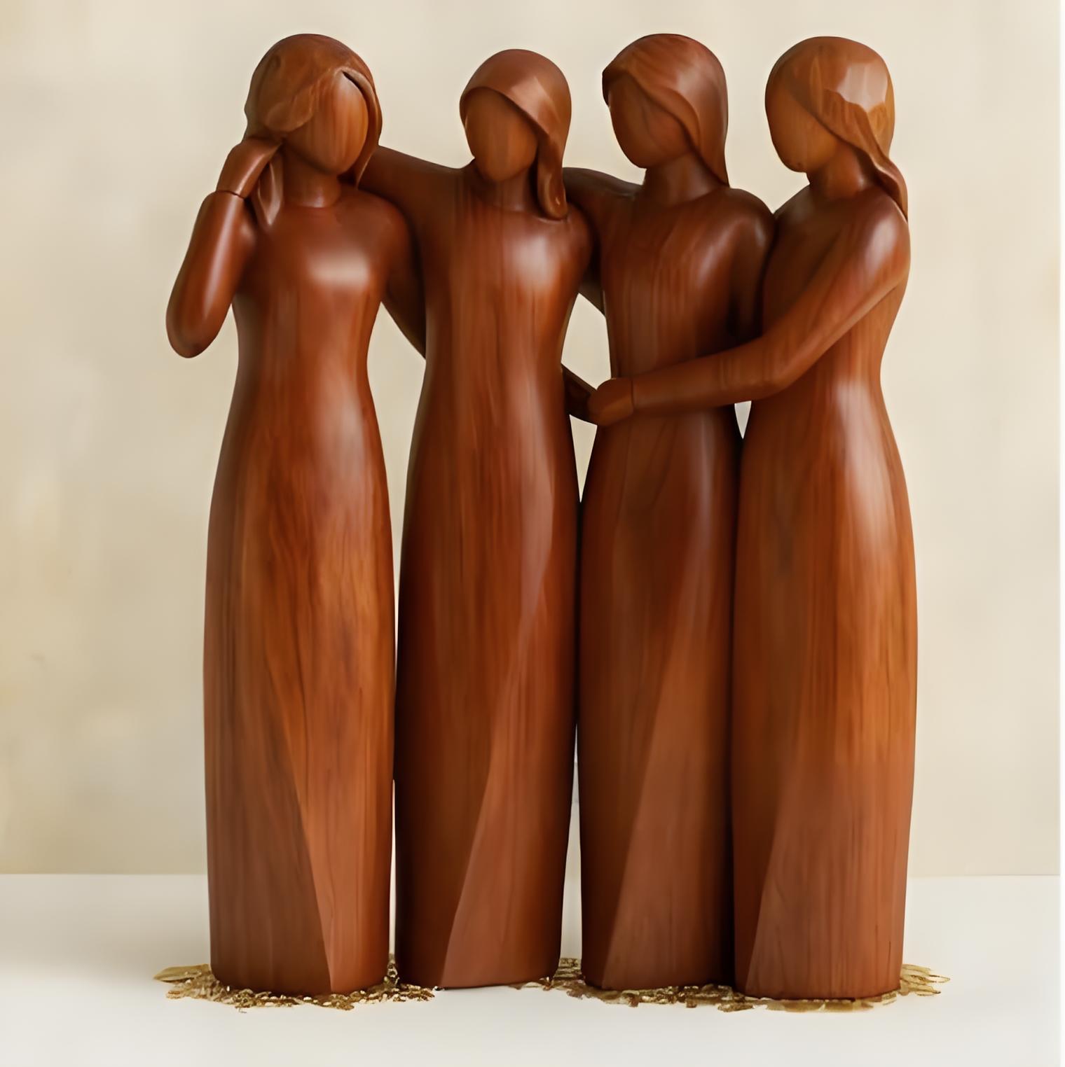 Crafted with smooth, flowing silhouettes, each figure’s posture conveys aspects of sisterly love: a hand forming a heart, an arm resting over a shoulder, or the close placement of four figures together.