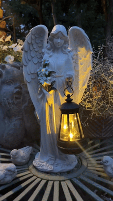 Simulated Watering Effect: The design includes an angel holding a watering can. The LED light is positioned to create a soft, downward glow, mimicking the effect of flowing water when illuminated in the dark.